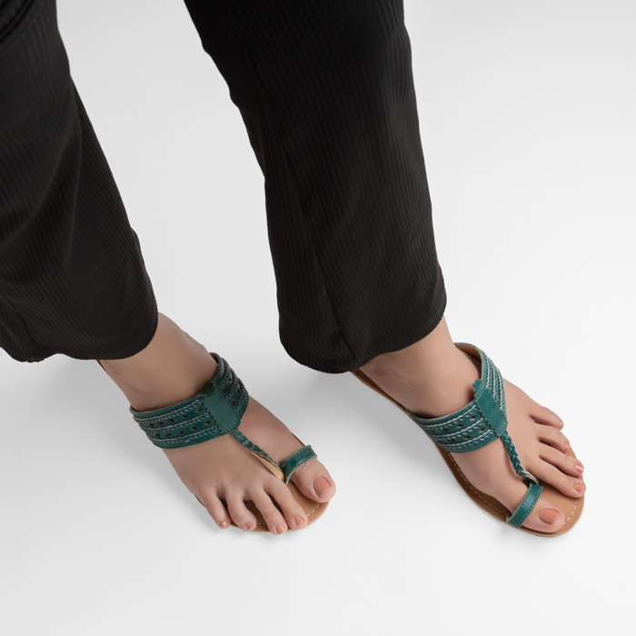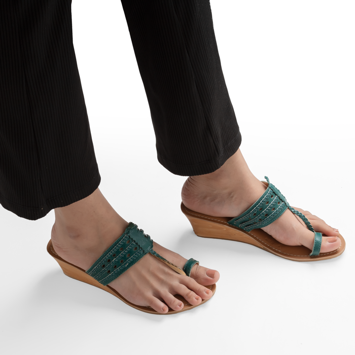 VEDYA TEAL WEDGE HEEL KOLHAPURI
