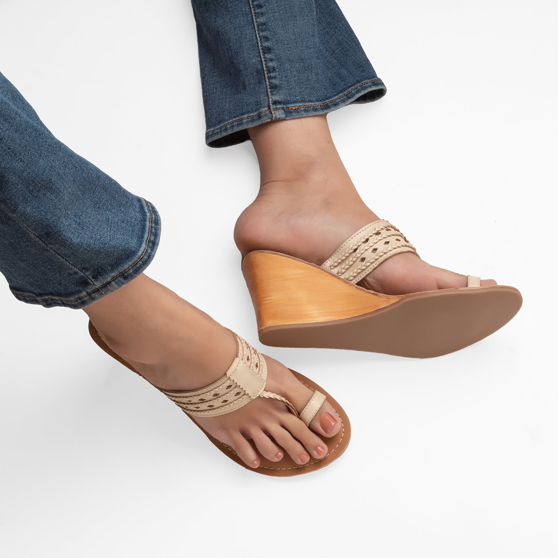 VERA IVORY WEDGE HEEL KOLHAPURI